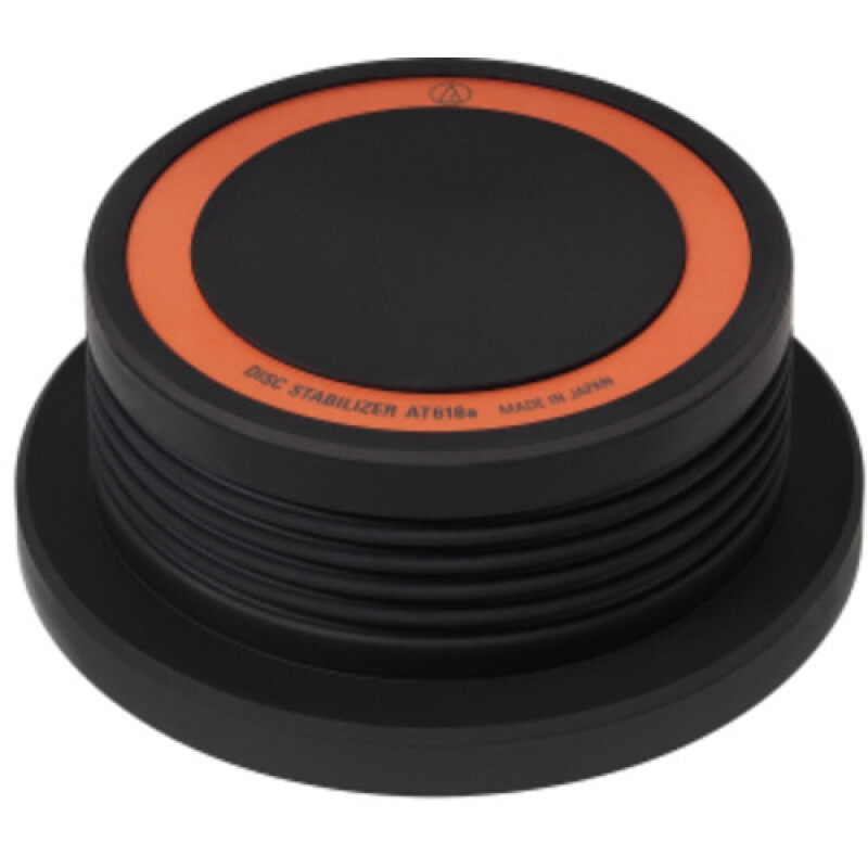 El estabilizador de discos AT618a se coloca sobre el eje del tocadiscos para sujetar los discos firmemente, reduciendo la resonancia y mejorando la calidad del sonido. El estabilizador está fabricado en latón mecanizado con una cubierta protectora de goma.