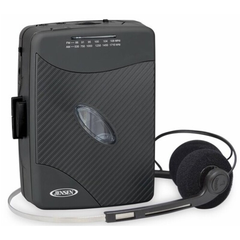 Reproductor de casete personal clásico Jensen SCR-75-HP con radio AM/FM y auriculares supraurales de estilo clásico (negro)