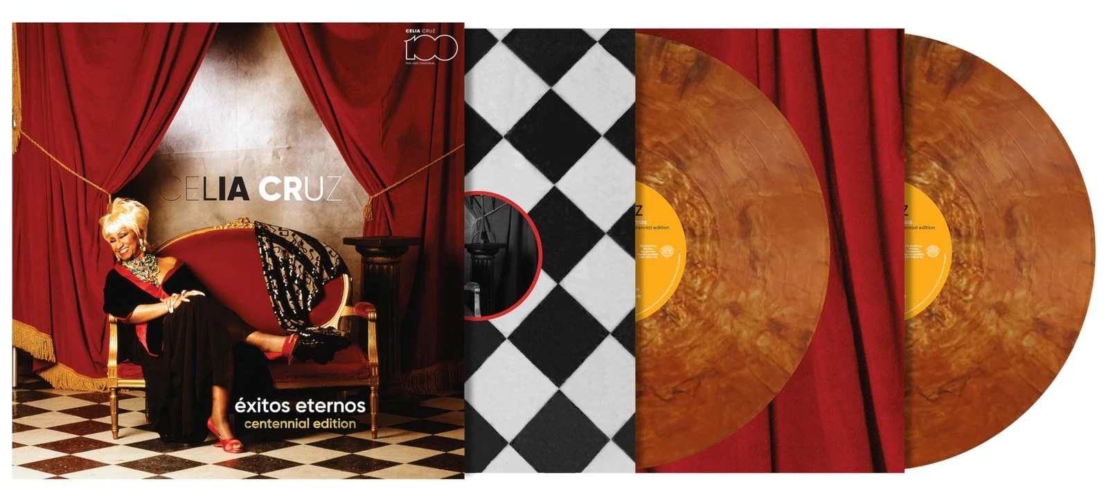 Celia Cruz – «Éxitos Eternos: Edición Centenario». Celia Cruz fue una de las artistas latinas más populares del siglo XX. Saltó a la fama en Cuba durante la década de 1950 como cantante de guarachas, ganándose el apodo de «La Guarachera de Cuba». En las décadas siguientes, se hizo conocida internacionalmente como la «Reina de la Salsa» y vendió más de 10 millones de discos. En 2023, la revista Rolling Stone la incluyó en el puesto número 18 de las 200 Mejores Cantantes de Todos los Tiempos y también fue homenajeada en el programa de monedas American Women de 2024, convirtiéndola en la primera afrolatina en aparecer en una moneda estadounidense de 25 centavos. Para conmemorar el centenario de la legendaria Celia Cruz, esta compilación de éxitos atemporales cuidadosamente seleccionados, que incluye colaboraciones con algunos de los artistas más queridos del Caribe y Latinoamérica, ha sido remasterizada y presentada con un arte impresionante en dos LP prensados en vinilo color cobre. Este lanzamiento honra la vida, el arte y el legado perdurable de uno de los íconos más venerados de la música latina.