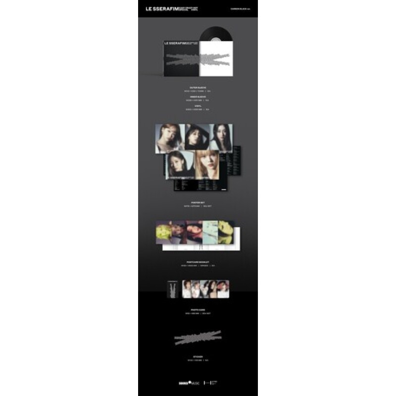 Le Sserafim – «VINILO ESPECIAL ‘EASY-CRAZY-HOT'»: [NEGRO CARBONO] En medio de su gira mundial ‘EASY CRAZY HOT’, el grupo femenino líder de K-pop Le Sserafim (KIM CHAEWON, SAKURA, HUH YUNJIN, KAZUHA y HONG EUNCHAE) lanza un vinilo especial titulado ‘EASY-CRAZY-HOT’ con todos sus éxitos mundiales. Disponible en dos colores de vinilo: BLANCO PLATEADO y NEGRO CARBONO, incluye funda exterior, funda interior, set de pósteres (5 unidades), libreto de postales (10 páginas), set de tarjetas fotográficas (5 unidades) y pegatina. Dimensiones: 312 x 312 x 3 mm.